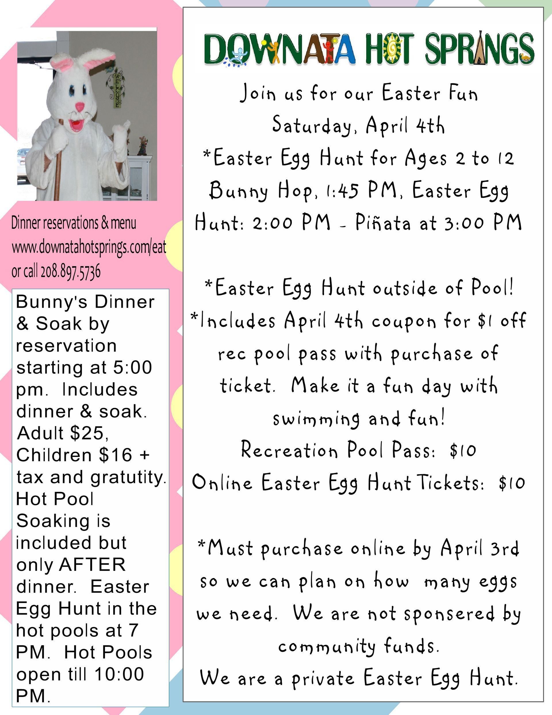 If you want the Luck of the Irish Dinner and Soak for Two, please indicate on your reservation on March 14th.