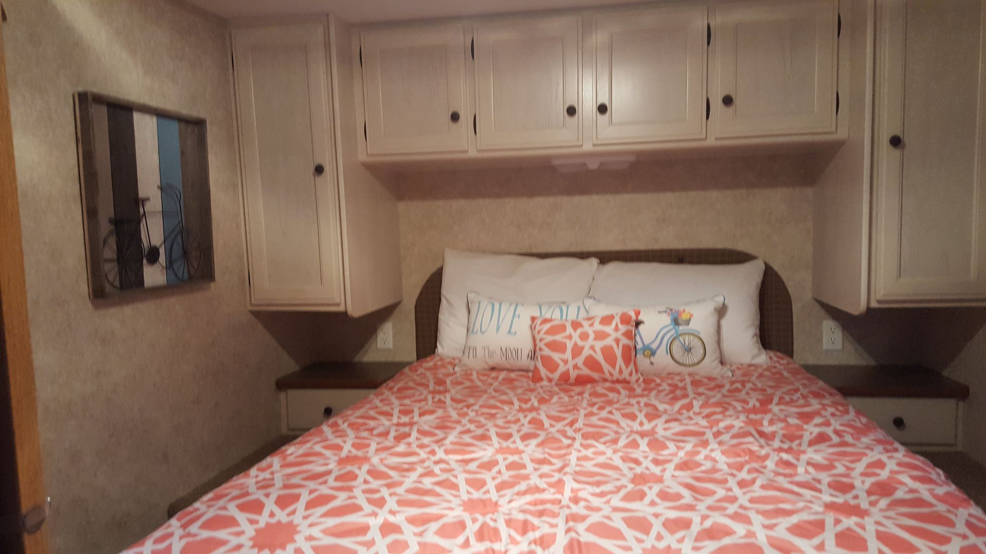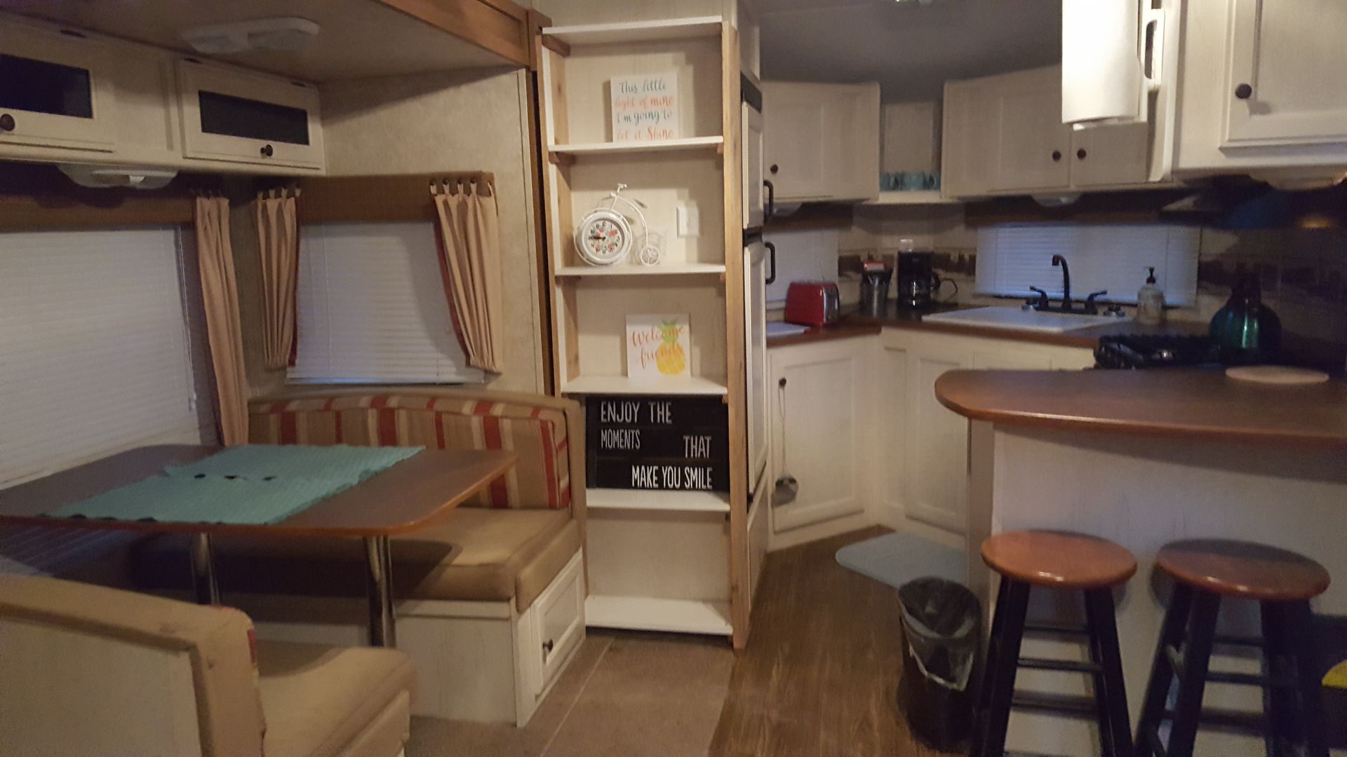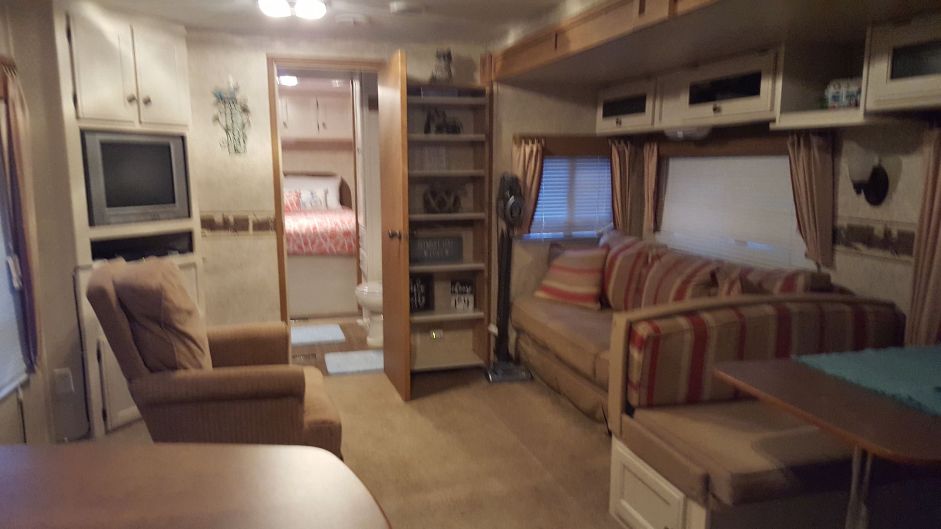 Sleeps two people. Located in the main tenting area. RV Trailer has bedding, bathroom, kitchen with dishes, fire pit outside. This trailer is